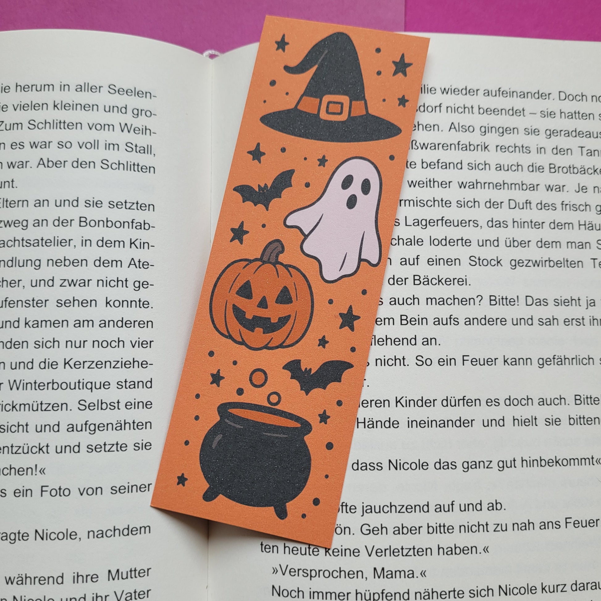 Mit ca. 5,5 × 15 cm ist das Lesezeichen ideal für Taschenbücher und Hardcover und beidseitig bedruckt, sodass du die Halloween-Atmosphäre immer genießen kannst.